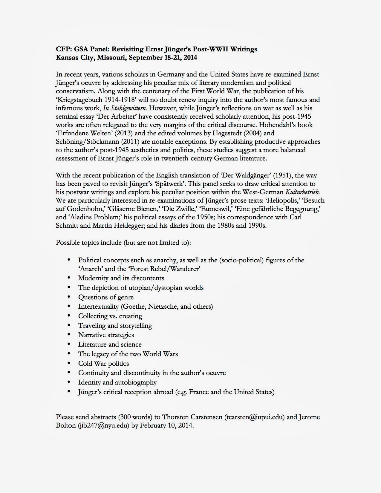A Call for Papers on post-1945 Ernst Jünger, which for obvious reasons I am happy to pass on here – far too infrequently does this vastly more significant period of his life get attention from academia!